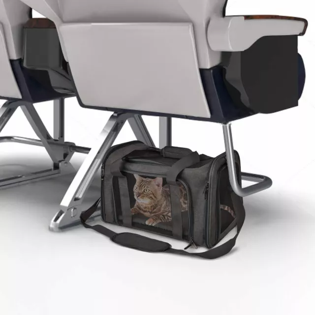 The carrier comes in two practical sizes: M: 17.3 x 11 x 11 in, ideal for pets up to 17 lb L: 19.7 x 13.4 x 13.4 in, ideal for pets up to 26 lb Each size is perfectly shaped to give your pet enough room to relax while still meeting common airline requirements.