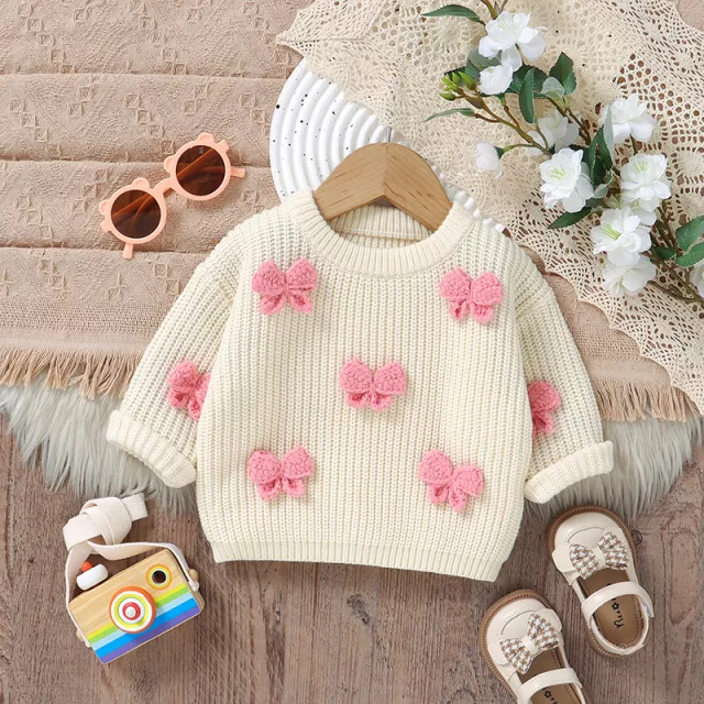 Baby Knit Sweater with Cute 3D Bow Appliques