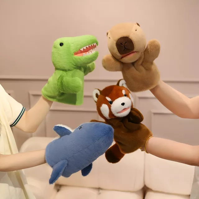 Bring stories to life with these charming plush animal hand puppets, designed to entertain, comfort, and spark your child’s imagination. Each puppet is crafted from super soft plush and filled with gentle PP cotton, making it cozy to hold and delightful to play with. With a cute selection of animal friends including shark, raccoon, lion, dinosaur, panda, fox, duck, pig, capybara, and dog, kids can enjoy endless storytelling adventures. Sized at approximately 10 inches, these puppets fit comfortably on most hands, making them perfect for both parents and little ones to use during playtime.