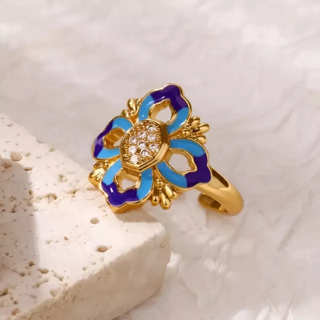 Elevate your look with this stunning Gold Four-Leaf Clover Zircon Ring, designed to add a touch of charm, sparkle, and meaning to any outfit. Crafted from durable stainless steel and finished with luxurious 18k gold plating, this adjustable ring blends timeless elegance with modern appeal. The delicate oil-drip detailing and shimmering zircon accents highlight the classic four-leaf clover shape, a symbol of luck, hope, and happiness. Whether you’re dressing up for a special event or adding a little magic to your daily style, this ring is the perfect accessory.