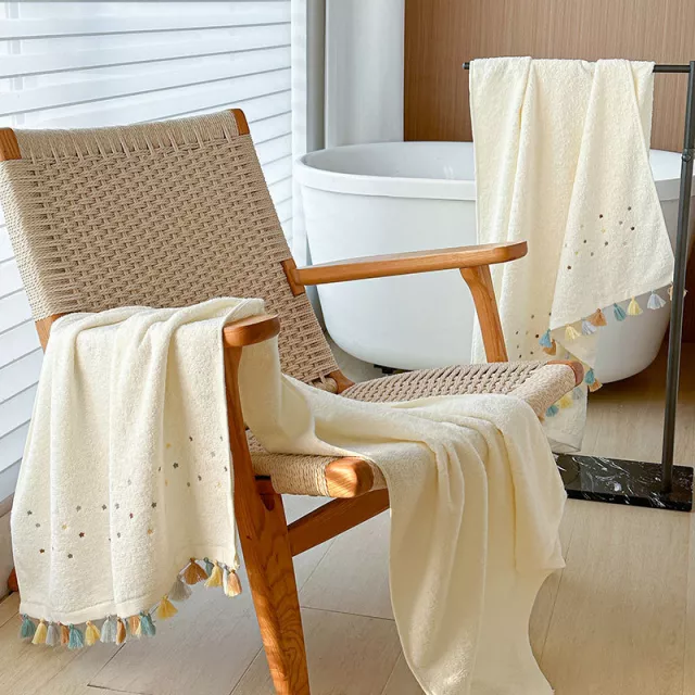 This towel is all about understated elegance. The solid color, plain-weave design pairs beautifully with tassel detailing, giving it a fashionable and modern look that suits any home style. Even without traditional terry loops, the fabric remains soft, smooth, and surprisingly absorbent thanks to its pure cotton composition. Lightweight yet durable, it feels luxurious without feeling heavy.
