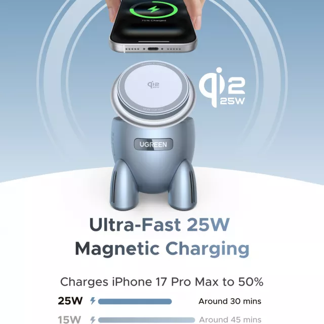 Beyond its stylish design, this magnetic charging stand blends speed, convenience, and versatility. It provides up to 25W wireless output for quick top-ups and stable overnight charging. The integrated holder improves usability, especially when multitasking, and its ability to charge multiple devices at once brings order to tangled cables and cluttered desks. It’s best used when you want fast charging without the hassle — during work sessions, bedside charging, or while watching content hands-free.