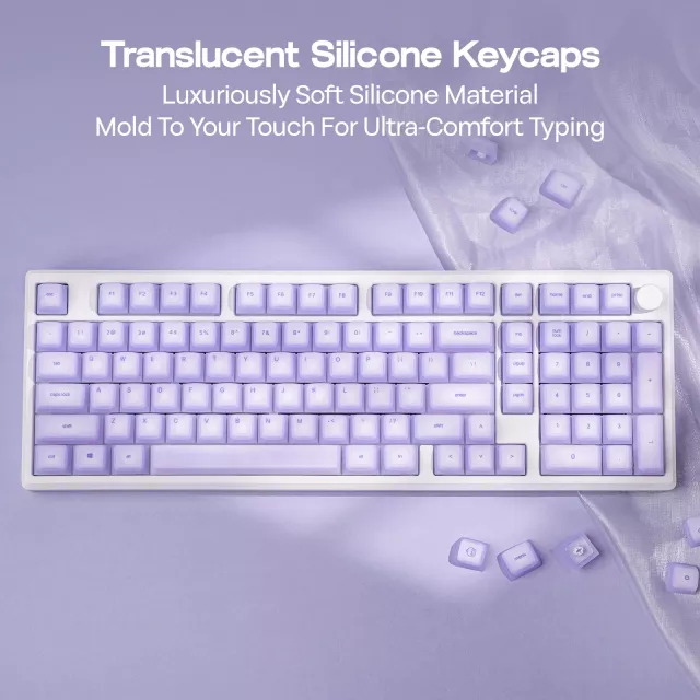 Transform your mechanical keyboard with this 113-key silicone keycap set, designed to deliver a uniquely soft, springy, and quiet typing experience. Each keycap is made from smooth, cushioned silicone that reduces finger fatigue, absorbs impact, and keeps every keystroke gentle on your hands. With a slightly grippy, sweat-resistant surface, your fingers stay secure even during fast gameplay or long work sessions. If you’re seeking a quieter, softer, and more comfortable upgrade, this keycap set is made for you.