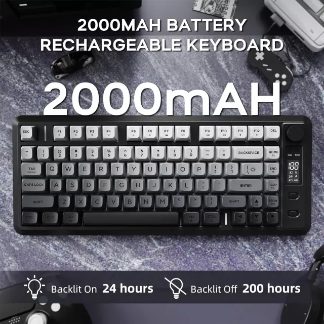 What sets this keyboard apart is its integrated OLED display and multi-function control knob, giving you quick access to essential adjustments right at your fingertips. Paired with vibrant rainbow backlighting and premium gradient PBT keycaps, it brings personality and clarity to your gaming station. Its lightweight wireless design lets you move freely using Bluetooth or 2.4GHz connectivity, while the USB interface ensures simple charging and setup.